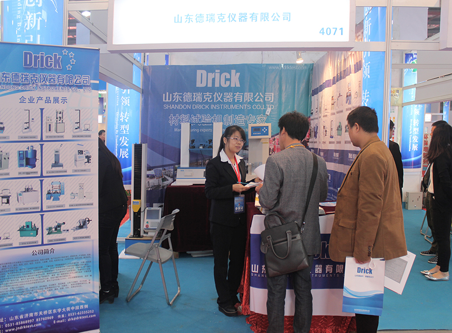 展會上,山東德瑞克用專業的品質和熱情洋溢的服務態度迎接每一位到訪的客商,集中向客人介紹并現場演示了山東德瑞克儀器有限公司在橡塑塑料應用行業的電子拉力試驗機、擺錘沖擊機、壓縮試驗儀等質量檢測產品。大氣簡約的機器外觀和流暢智能化的機器性能贏得現場眾多客戶的一致好評。